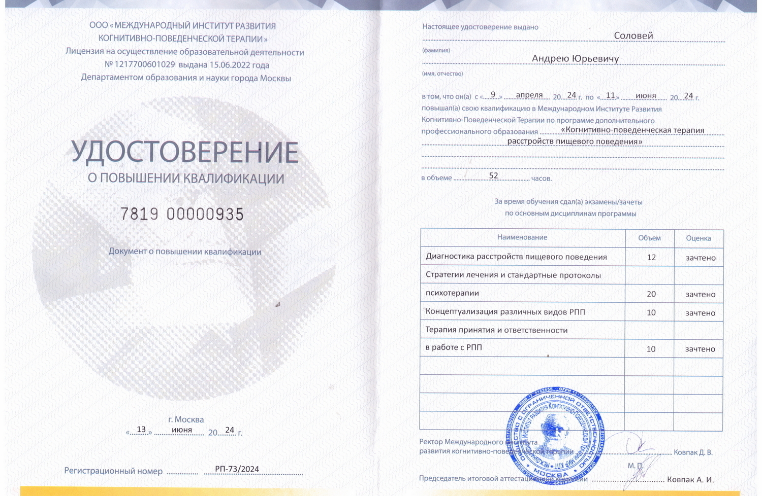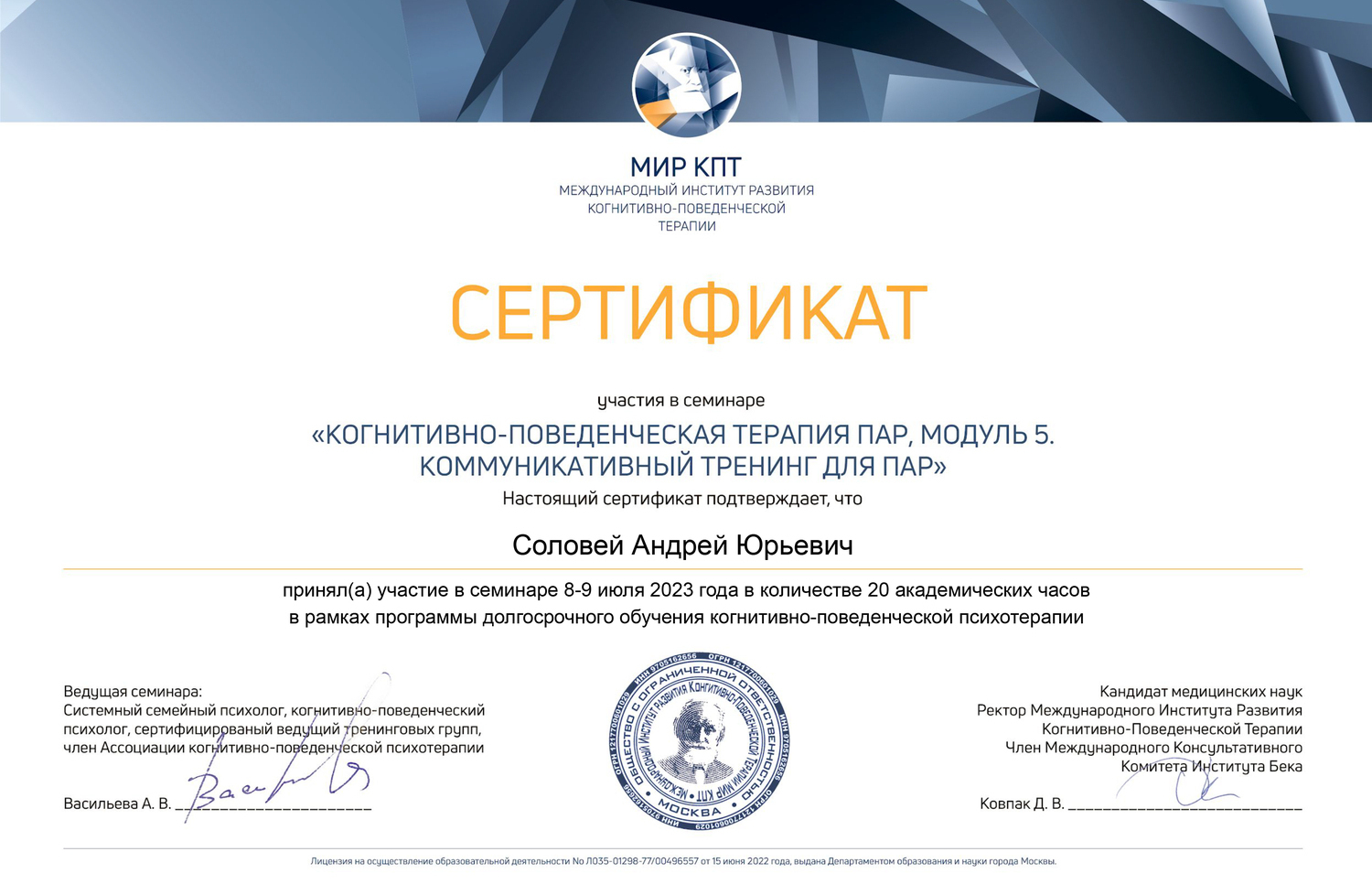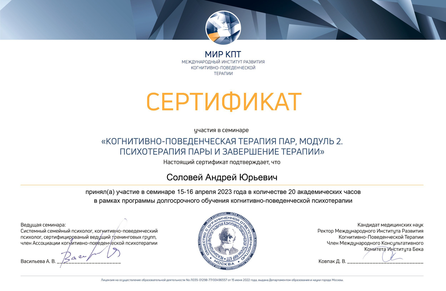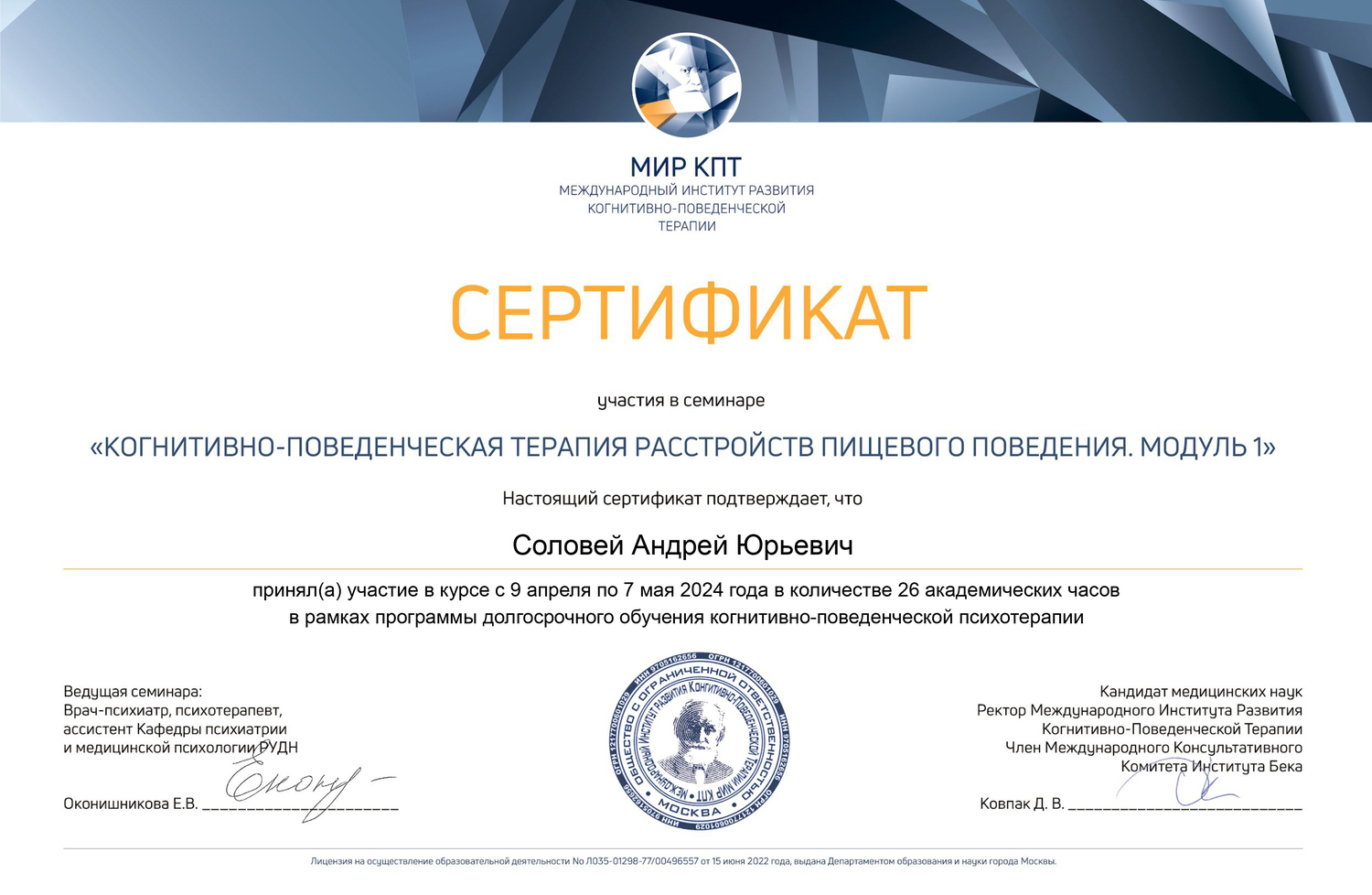 Являюсь действующим членом Ассоциации когнитивно-поведенческой психотерапии.